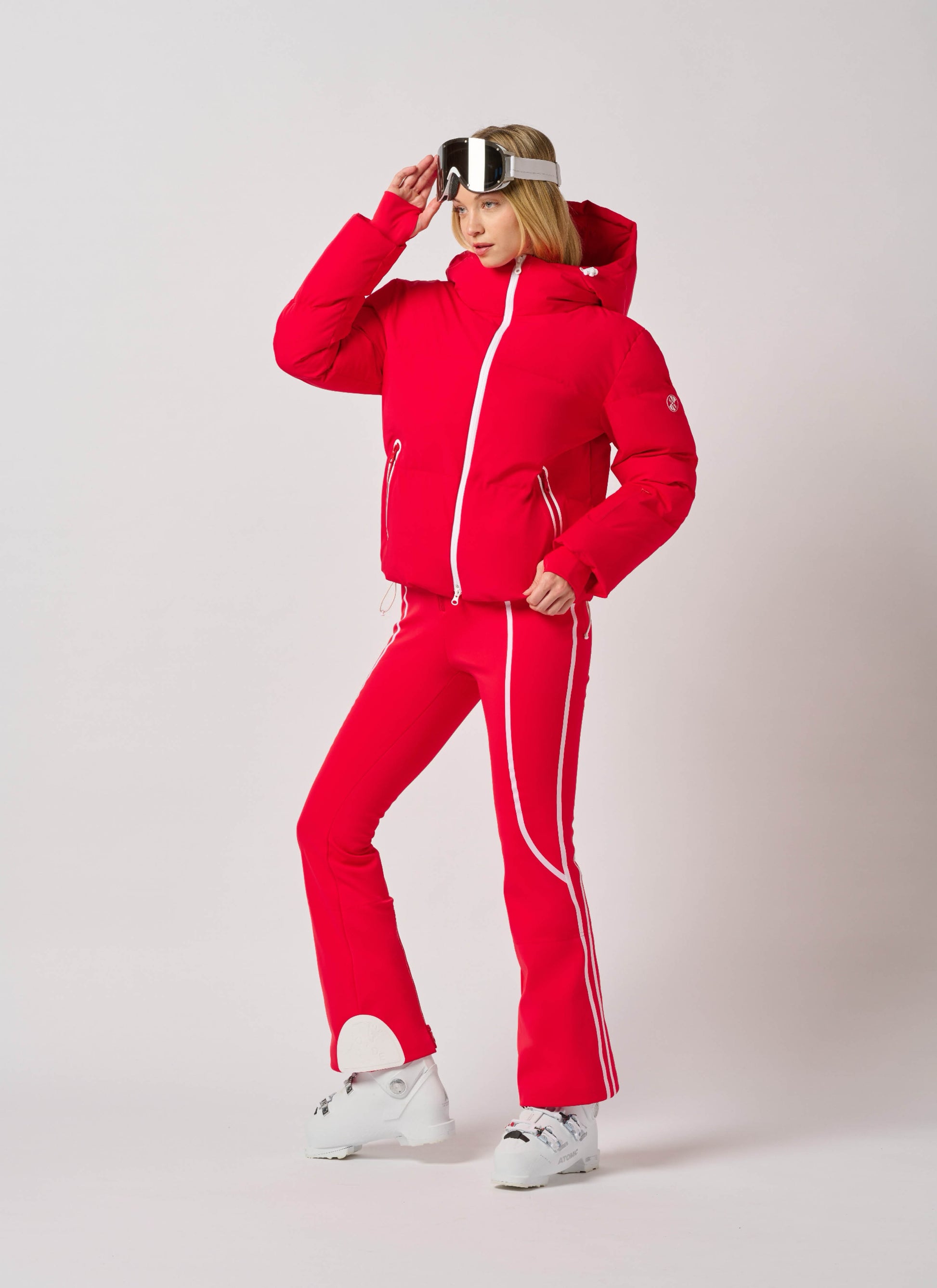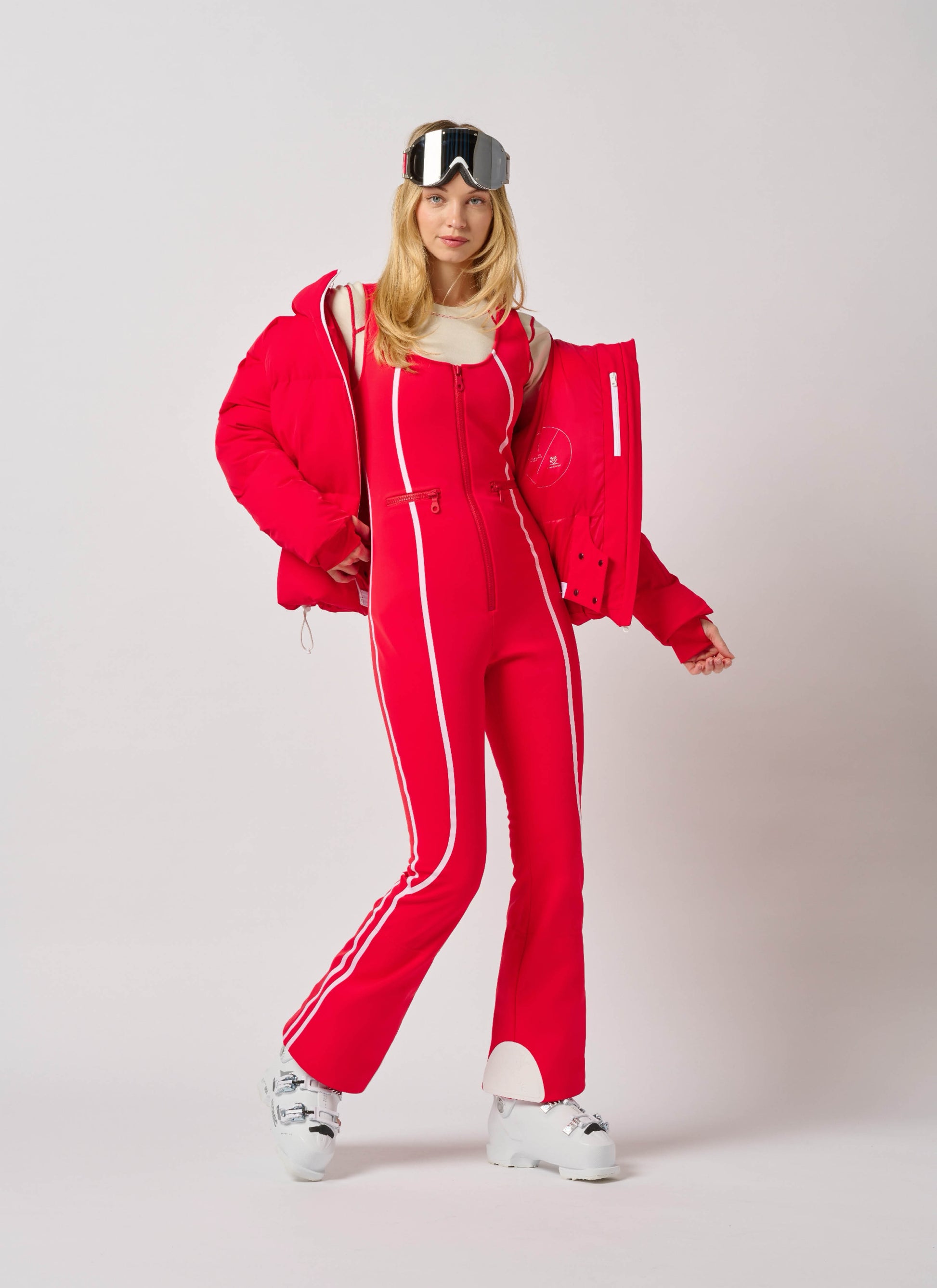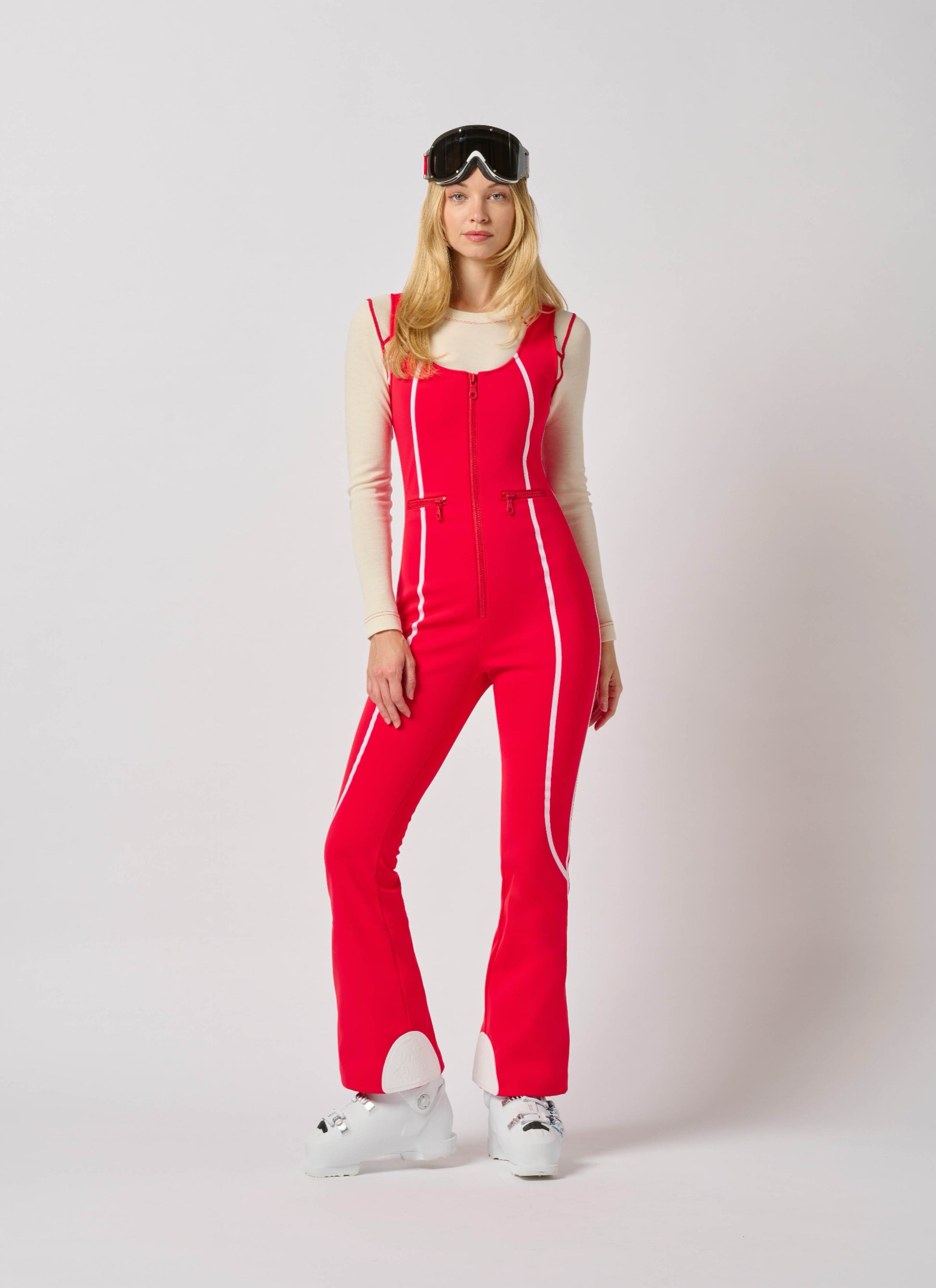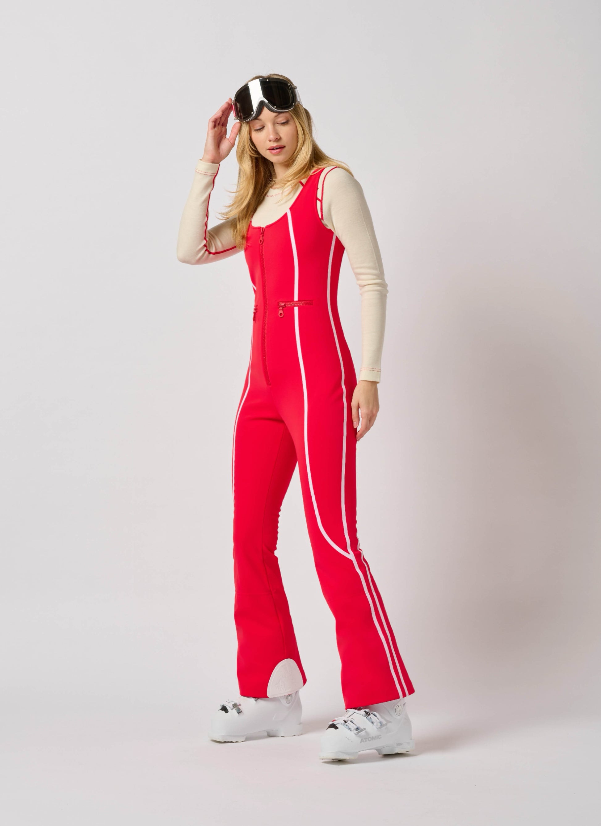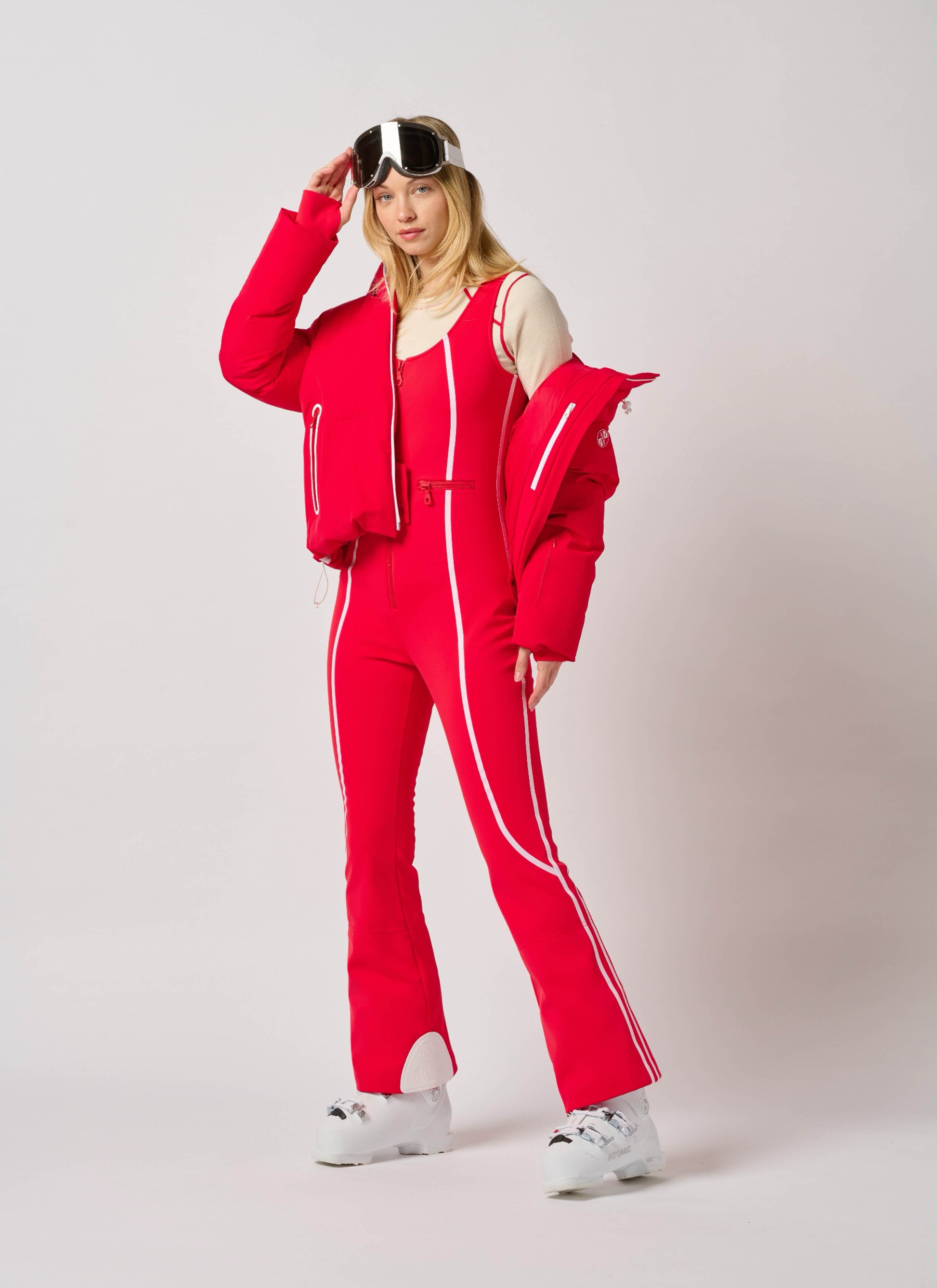 The Reese bib pant is our newest softshell addition to the collection. With shaping silhouette detailing down the garment, the Reese is perfect for keeping your core extra warm on long ski days, or the perfect standalone piece for après ski. Pair with the Poppy ski jacket or Nell puffer vest.